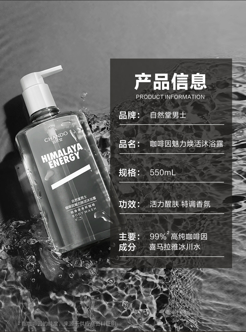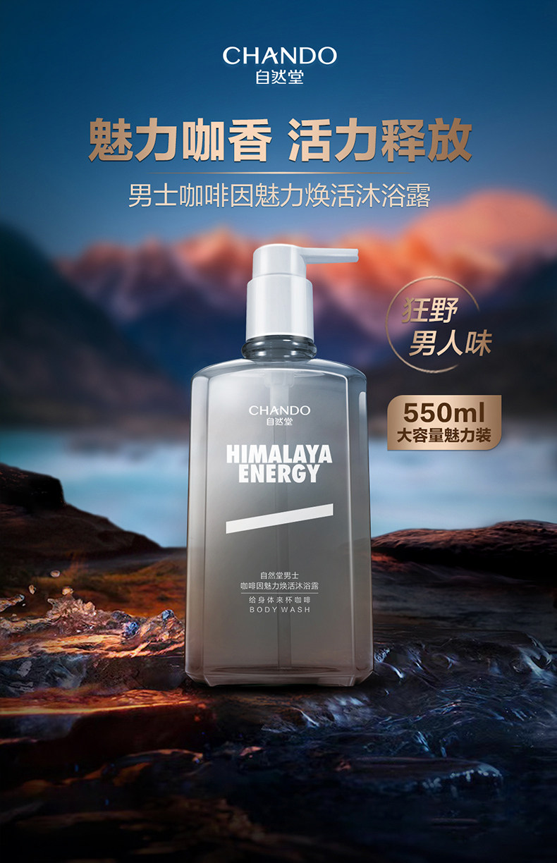 自然堂男士咖啡因魅力焕活沐浴露活力醒肤留香净透清爽洗